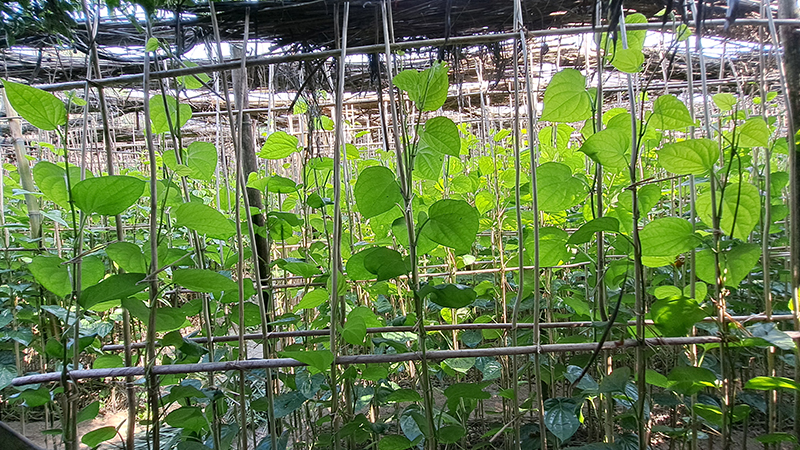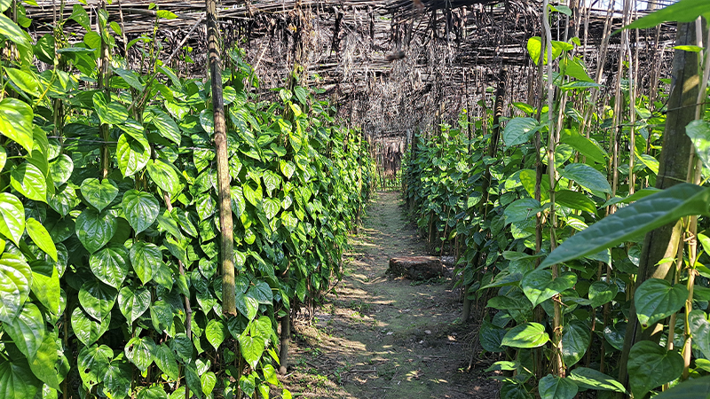 সম্প্রতি সরেজমিনে দেখা যায়, নিরাপত্তার জন্য পানের বরজগুলো চারদিক দিয়ে বেড়া দেয়া হয়েছে। জমির মধ্যে সারিবদ্ধভাবে থাকা পাটকাঠির সঙ্গে জড়িয়ে আছে পানের গাছ। গাছগুলোতে ঝুলছে সবুজ রংয়ের মিষ্টি পান। কৃষকরা পরিচর্যার কাজে ব্যস্ত সময় পার করছেন। যদিও তীব্র শীত ও কুয়াশার প্রভাব নিয়ে কিছুটা দুঃশ্চিন্তার মধ্যে রয়েছে চাষিরা। কারণ শীত আর কুয়াশায় পানের ক্ষতি হবার শঙ্কা থাকে