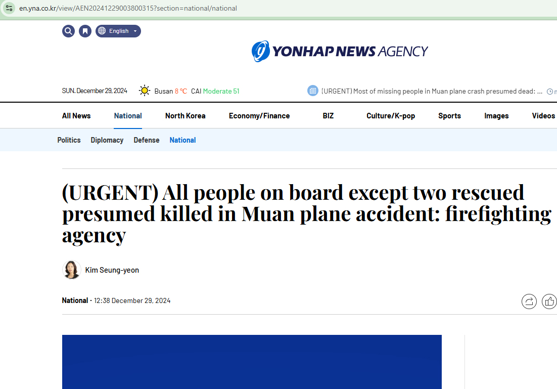 রয়টার্স বলছে স্থানীয় ফায়ার সার্ভিসের প্রধান জানিয়েছেন, দুর্ঘটনাস্থলের আগুন নেভানো হয়েছে। এছাড়া বিমানের পেছনের অংশ থেকে দুই ক্রু সদস্যকে উদ্ধার করা হয়েছে। তাদের মধ্যে একজন পুরুষ ও একজন নারী রয়েছে। এদিকে দক্ষিণ কোরিয়ার সংবাদ সংস্থা ইয়নহাপ দেশটির অগ্নিনির্বাপক সংস্থার বরাতে বলছে, উদ্ধার হওয়া দুইজন ছাড়া উড়োজাহাজটির সব যাত্রী নিহত হয়েছেন।